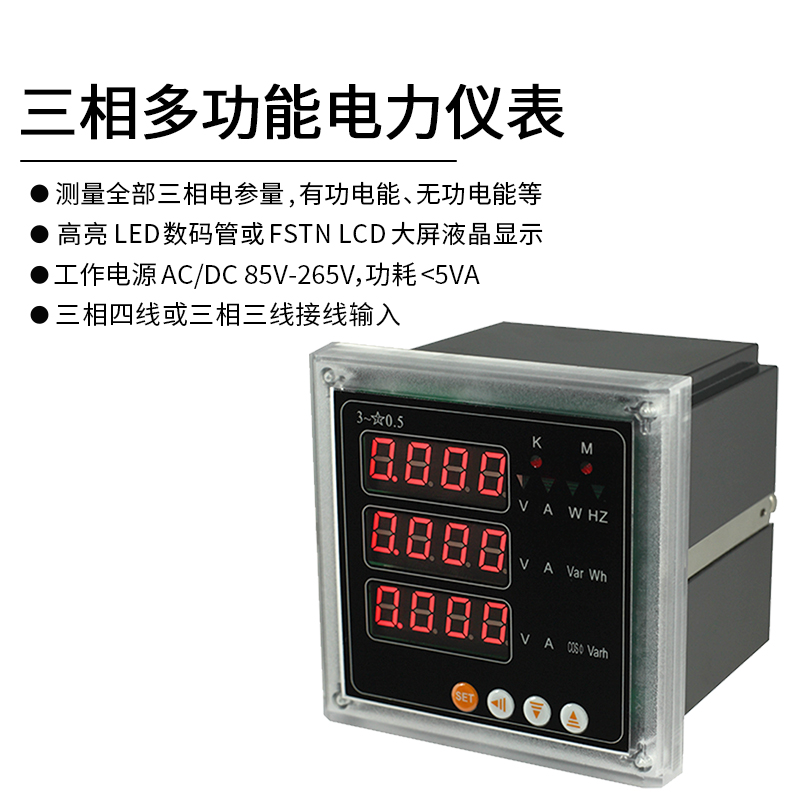 (2) 能夠完成三相電參量測量(三相電壓、三相電流、剩余電流、有功功率、無功功率、視在功率、功率因數(shù)、頻率等)、諧波測量、電網(wǎng)質(zhì)量分析(電壓波峰系數(shù)、電流K系數(shù)、電話波形因子、電壓電流不平衡度、正序電壓、負(fù)序電壓、零序電壓、正序電流、負(fù)序電流、零序電流等)、四象限電能計(jì)量、復(fù)費(fèi)率電能計(jì)量、需量記錄、SOE事件記錄、數(shù)據(jù)顯示、采集及傳輸,可廣泛應(yīng)用變電站自動(dòng)化、配電自動(dòng)化、智能建筑、企業(yè)內(nèi)部的電能測量、管理、考核;